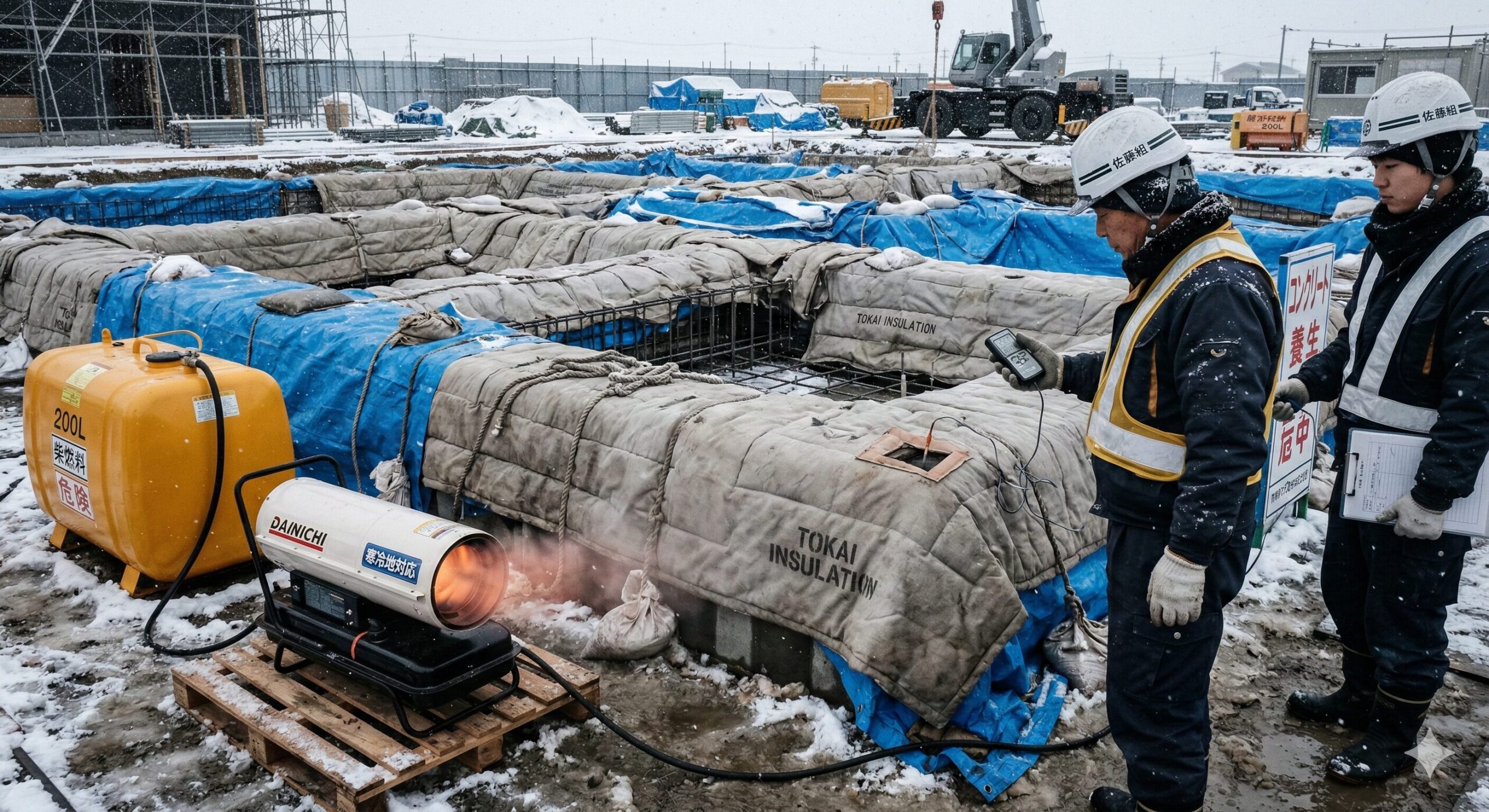 冬季(寒中コンクリート)や夏季(暑中コンクリート)においては、構造体の強度を確保するために、呼び強度を補正(+3〜6N程度)して発注する必要があります。この**「温度補正分の強度アップ」**は、そのまま材料単価の増額要因となるため、実行予算の策定時には季節を考慮した単価設定が求められます。